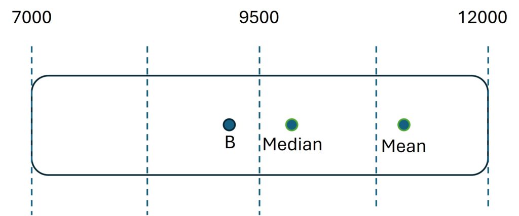 If you’re Worker C earning €10,000, and you only see the mean of €11,200, you might think you’re underpaid. You’re earning below average, after all.